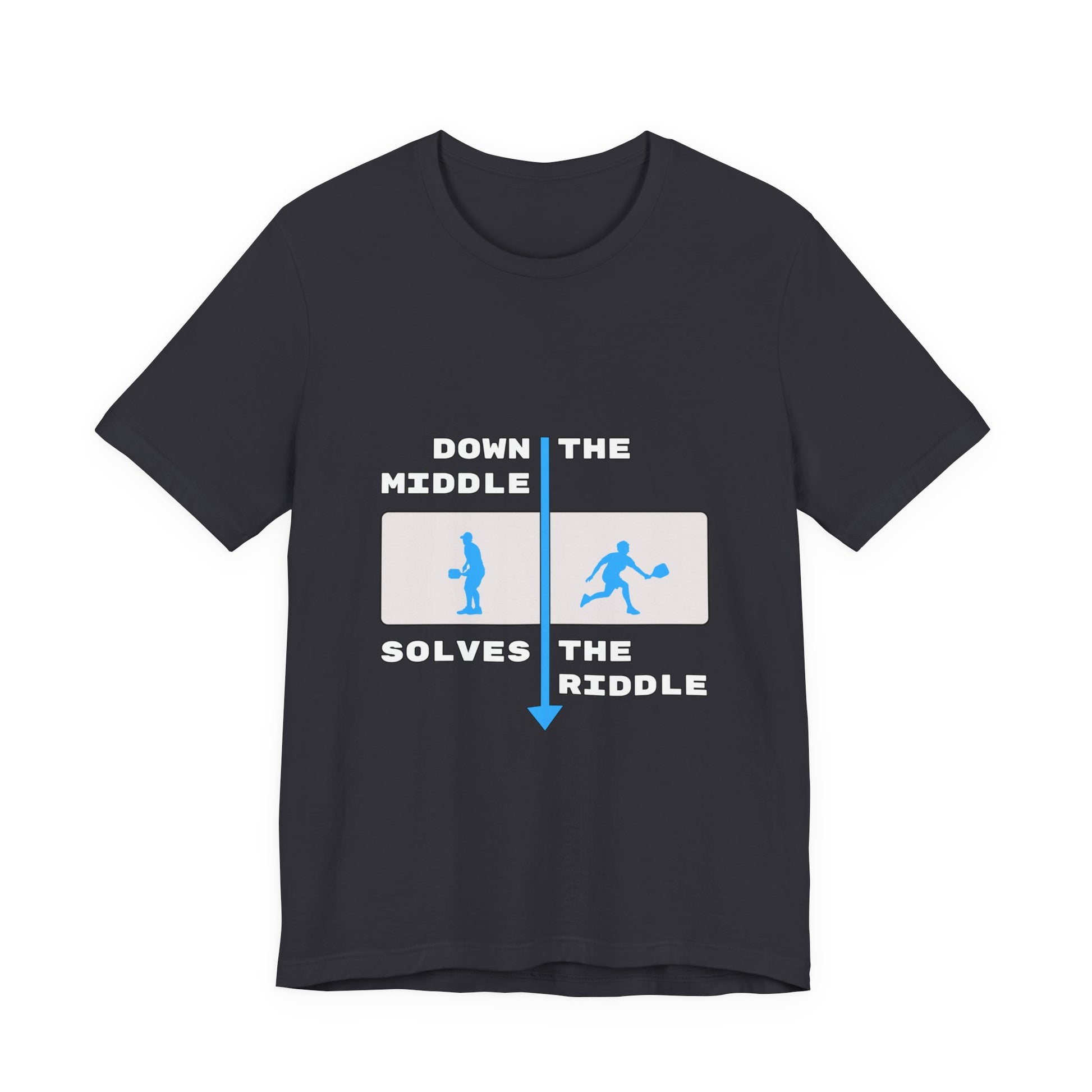 Your coach tried to tell you: "Down the middle solves the riddle." But, BAM! Everytime your opponent nails it between you and your partner, you realize you forgot ... again. Wear this t-shirt as a constant reminder!